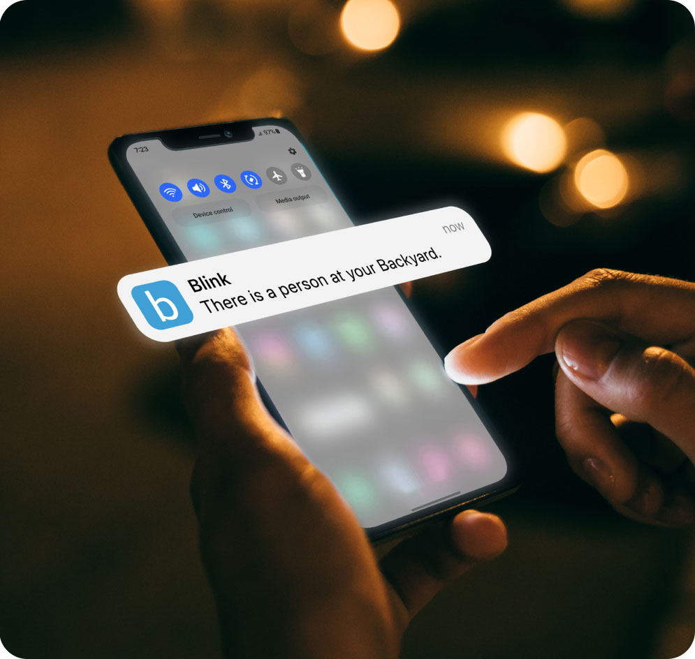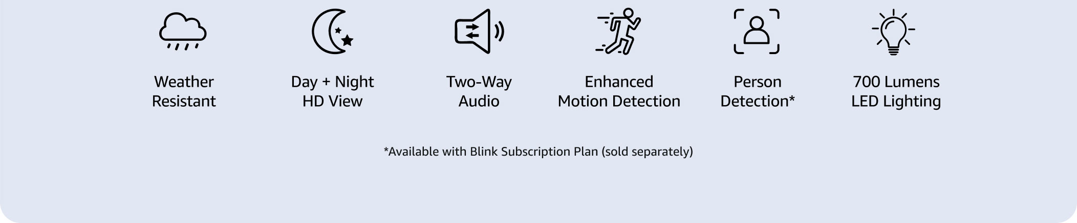 - Person detection — Receive alerts when a person is detected with embedded computer vision (CV) as part of an optional Blink Subscription Plan (sold separately).